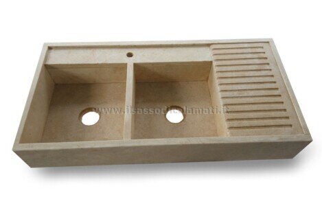 Lavello da cucina realizzato in travertino, 2 vasche e sgocciolatoio.